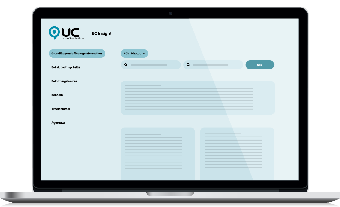 UC Insight är en webbaserad portal med affärsinformation som kommer från officiella register över personer och företag i Sverige. Genom att erbjuda korrekta data vid rätt tidpunkt, fungerar UC Insight som ett beslutsunderlag för att möjliggöra smartare och datadrivna beslut som minskar affärsrisker.